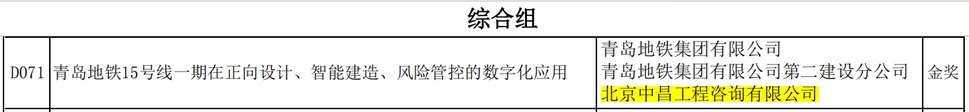 近日,备受行业瞩目的第六届 “智建杯” 国际智能建造创新大奖赛获奖名单正式公示。凭借在智能建造领域的深厚技术积淀、创新实践成果与卓越综合实力,北京中昌工程咨询有限公司联合青岛地铁集团有限公司、青岛地铁集团有限公司第二建设分公司共同参赛的项目“青岛地铁15号线一期在正向设计、智能建造、风险管控的数字化应用”,一路过关斩将,从众多海内外参赛作品中脱颖而出,成功摘得综合组金奖,用实力赢得行业权威认可!也为企业发展历程再添浓墨重彩的一笔!